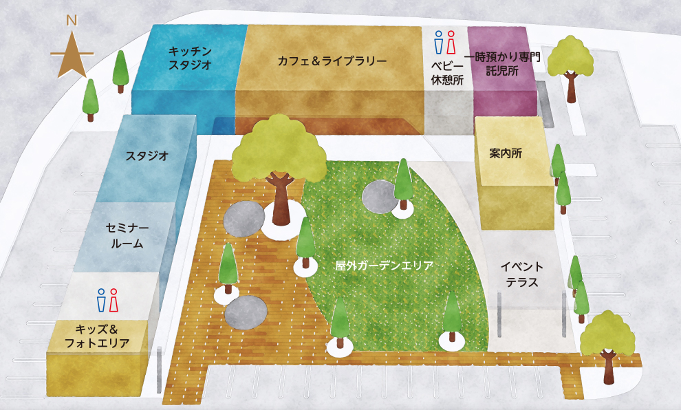 ※カフェと託児所の営業時間とお問い合わせについては、各施設の詳細ページをご確認ください